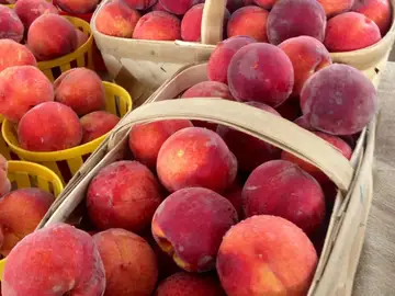 Fresh ripe peaches in market basketsSweet Georgia Peach